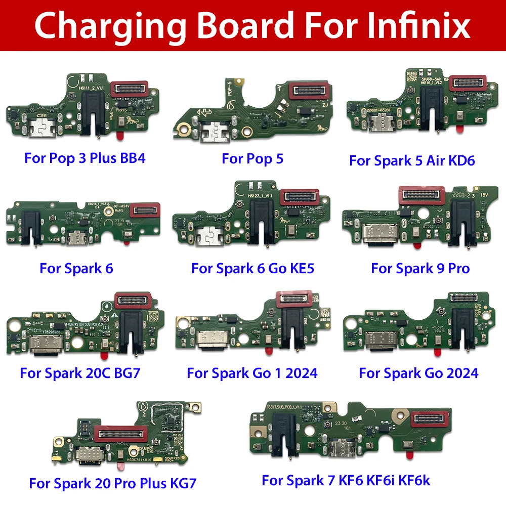 Charging Port for Tecno Pop 3 Plus BB4 5 Spark 5 Air KD6 6 Go KE5 7 9 Pro 20 Pro Plus KG7 20C BG7 Go1 Phone Spare Parts