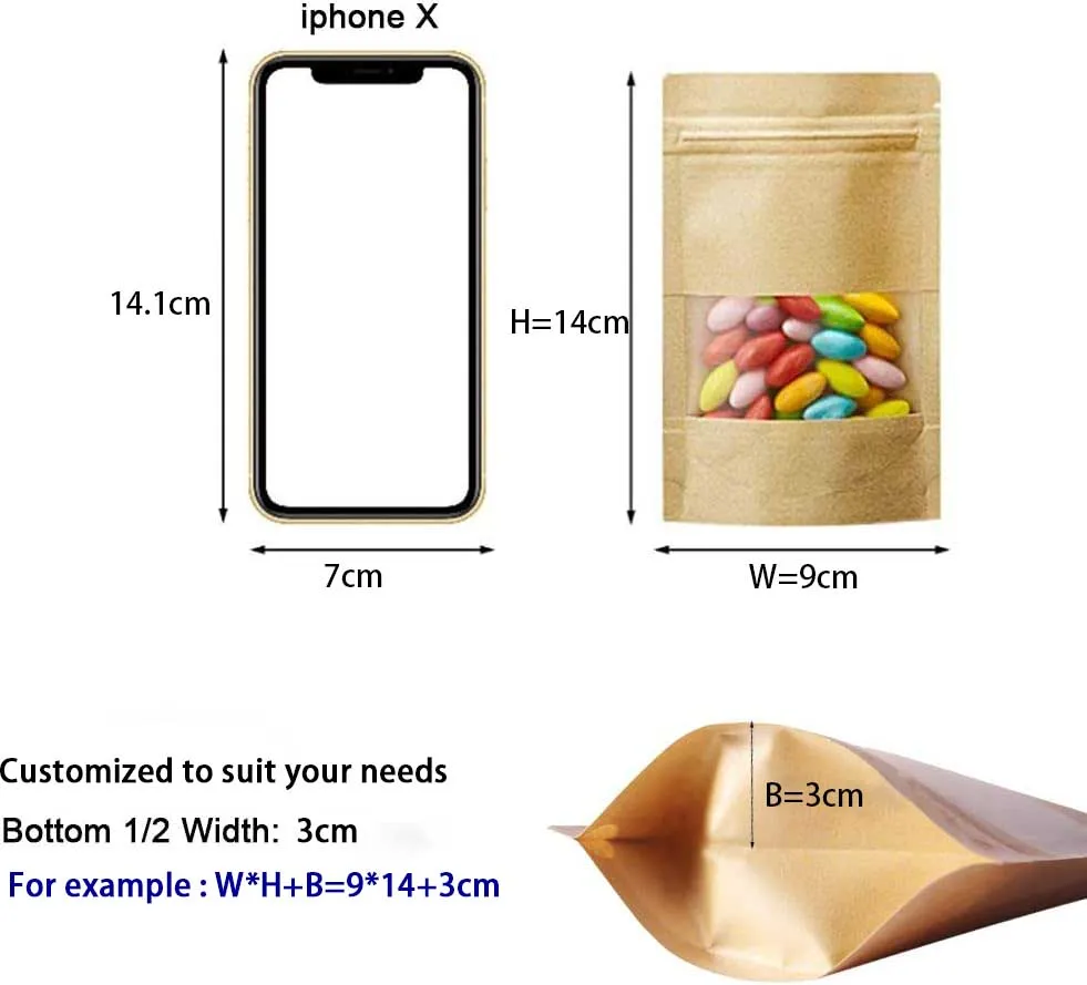 Classic Resealable Ziplock Recyclable Food Storage Stand-up Zipper Pouch Brown Kraft Paper Bag with Matte Window for Pet Food Pack of 200