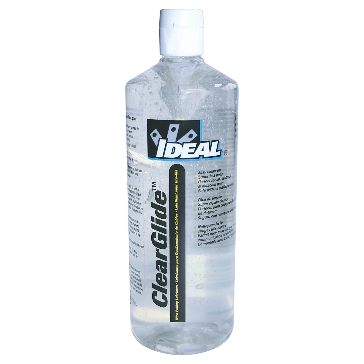 1 Quart (950ml) Wire Pulling Lubricant from Ideal Industries in a squeeze bottle. · · · Clear and colorless for quick and easy clean-up · · Exceptional lubricity for super-fast pulls · · Polymer-based formula perfect for all electrical and datacom applications · · Safe to use with all cable types · · Remains stable over wide temperature range — usable from 30°F to 180°F (-1°C to 82°C) · · Dries to a semi-fluid film that won’t clog conduit · · Clings to cable throughout long pulls · · Easy to apply by hand, brush, or pump · · Environmentally safe — non-toxic, non-flammable and non-corrosive