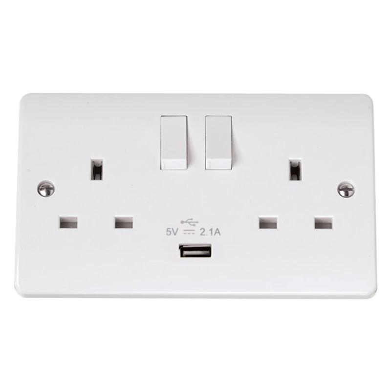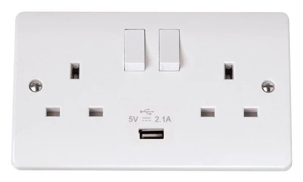 Click CMA770 2 Gang Switched USB Socket Outlet 13A with 1 x 2.1A USB