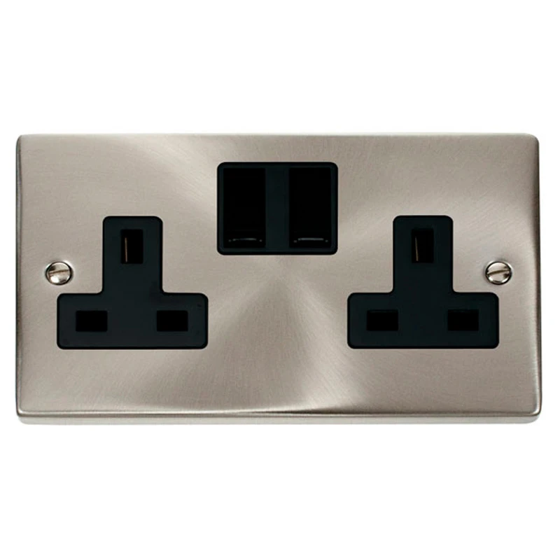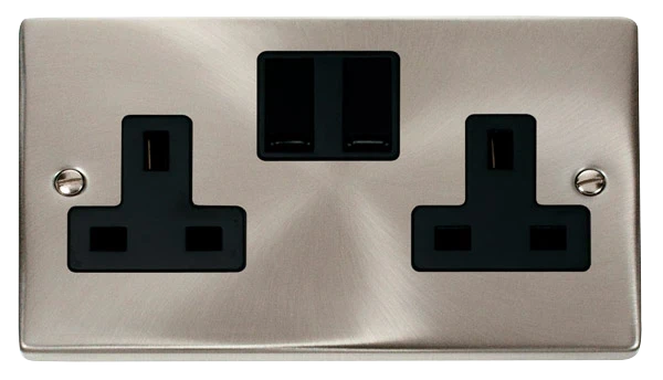 Click Deco 2-Gang 2-Pole Switched Socket Outlet 13AX Satin Chrome/Black
