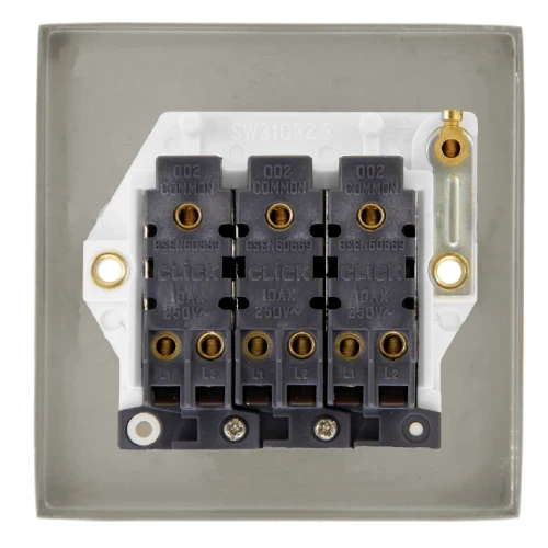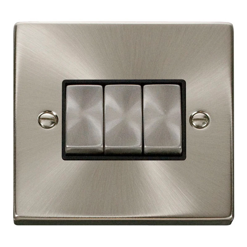 Click Deco 3-Gang 2-Way Ingot Plate Switch 10AX Satin Chrome/Black