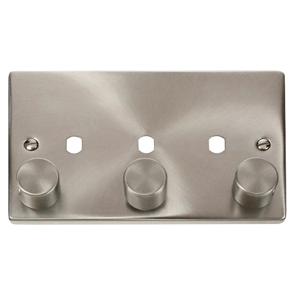 Click Deco Plate 3 Gang Double Dimmer c/w Knob Satin Chrome