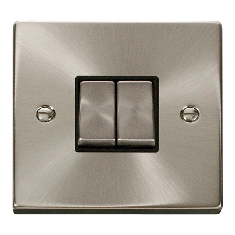 Click Deco Plate Switch 2 Gang 2 Way Black Insert Victorian 10A Satin Chrome