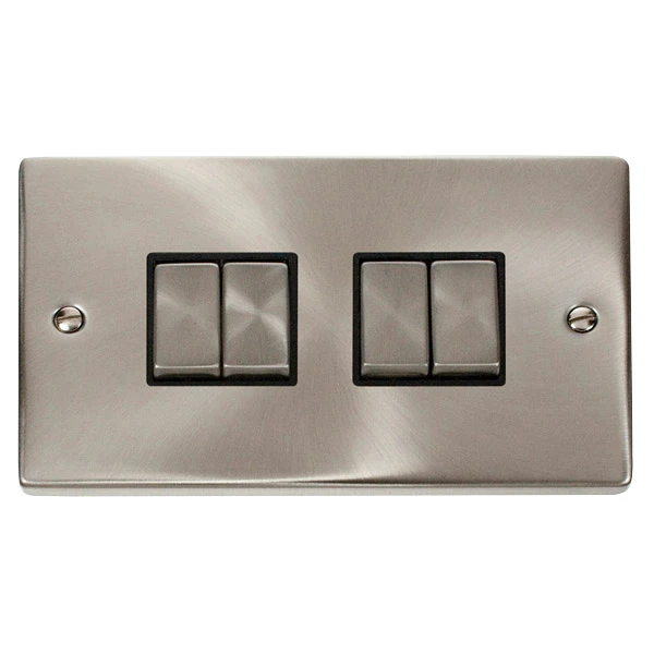 Click Deco Plate Switch 4 Gang 2 Way Black Insert Victorian 10A Satin Chrome