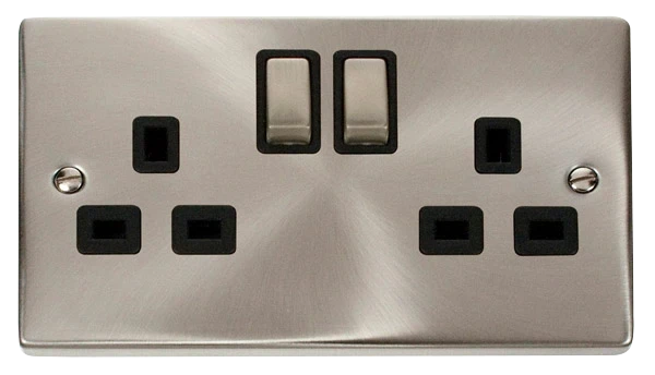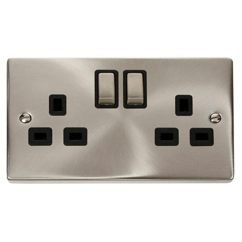 Click Deco Socket Ingot 2 Gang DP Switched Black Insert Victorian 13A Satin Chrome