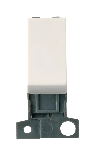 Scolmore MiniGrid Switch Module with polar white finish. This MiniGrid module is easily and quickly exchanged or mounted onto unfurnished plates by means of a simple single screw fixing. · · · 2 way MiniGrid module · · Screw fixing module · · Polar White finish