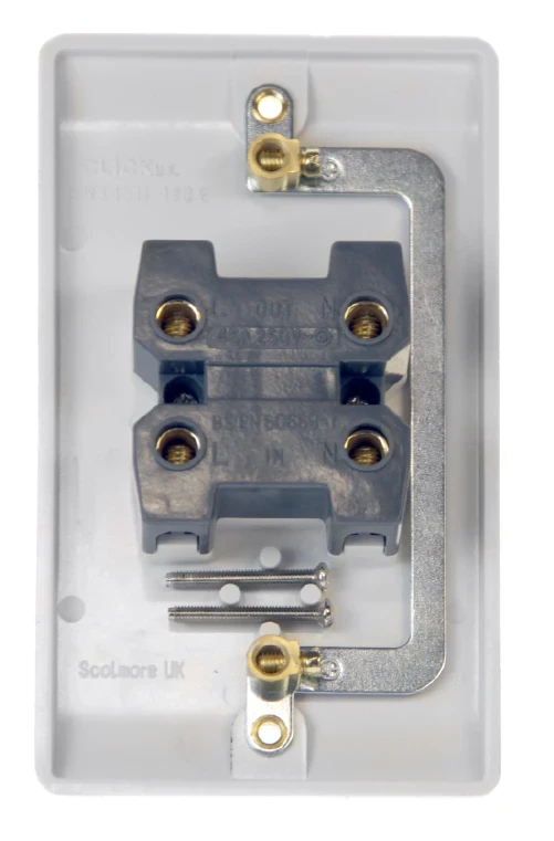 Click Mode CMA502 45A 2 Gang Single Cooker Switch. Click Mode is a contemporary range of premium white bright wiring accessories. Ergonomically designed with the smooth, modern lines of the MODE accessory plate will fit easily into traditional and contemporary designs alike. Click MODE accessories have been conceived and developed as a high quality, flexible and modern solution to virtually any domestic wiring requirement. All white moulded and Mode part M wiring accessories are manufactured using Urea Formaldehyde, which has similar inherent properties to antimicrobial additives that inhibit the growth of infectious diseases. All products independently tested achieved a 99.99% kill off rate across all four types of the strains of bacteria, MRSA, E-Coli, Salmonella and Klebsiella Pneumoniae. The Click Mode range features the same modular switch design which is compatiable with Mini-Grid modules however this is for switches only. · · · Marked “ON/OFF” · · Manufactured according to BS EN 4177 and BS EN 60669 standards