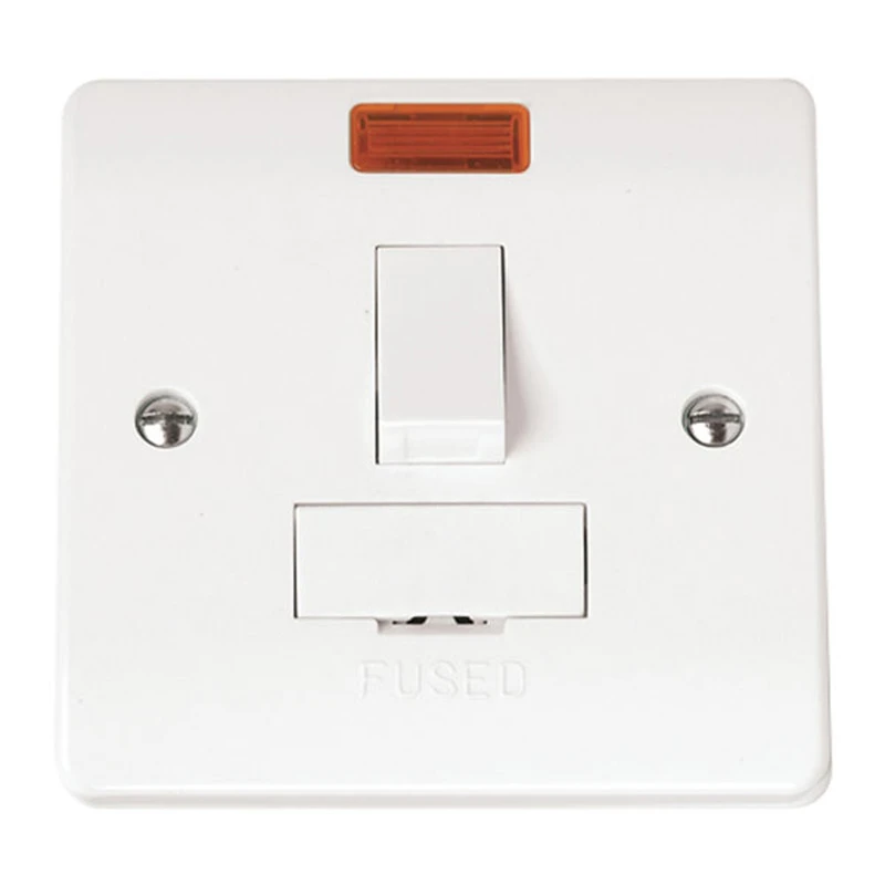 The Fused Connection Unit with neon indicator features large twin earth terminals on sockets and fused connection units as standard, greatly facilitates wiring and installation. · · · Tested and approved to BS1363 · · Assured quality and safety through BSI Kitemark Licence KM10807 · · Enhance the decor of any area whether in a kitchen, bedroom, lounge or study