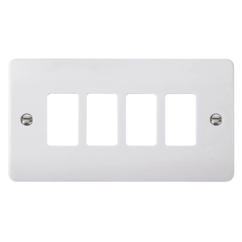 Scolmore GridPro Mode Grid Plate is a unfurnished interchangeable plate, available in white colour. This plate is a screw in module with no yoke and can be fitted to any standard back box. · · · Unfurnished · · 4 gangs · · 20 year warranty · · IP20 protection rating