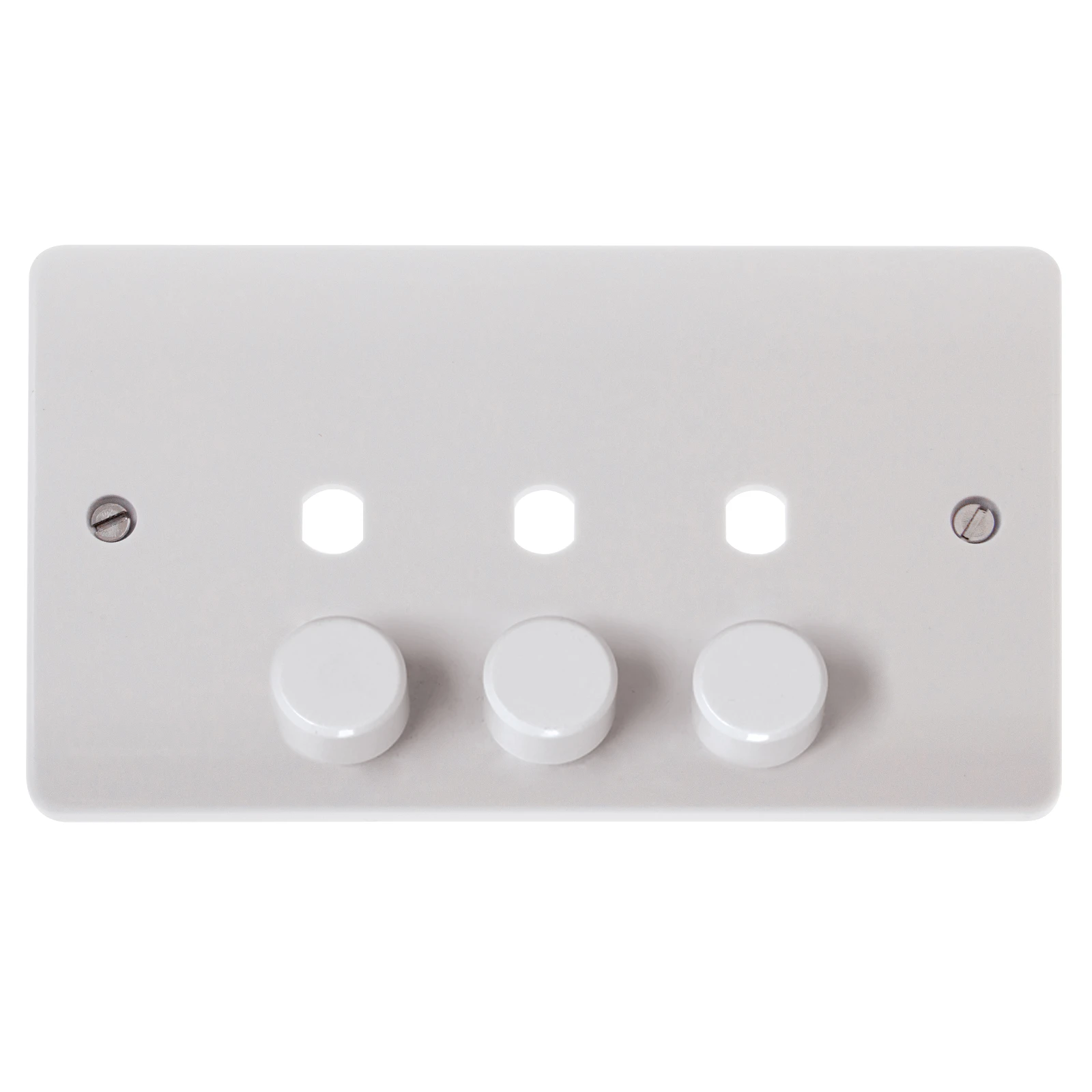 Click Mode Plate 3 Gang Double Dimmer c/w Knob White