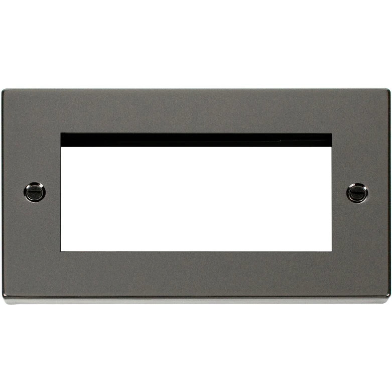 Deco 2 gang victorian black nickel black gasket unfurnished plate 4 apertures. · · · Dimensions 146mm (W) x 88mm (H) x 8mm (D) · · Plate Design & Finish Victorian Black Nickel · · Insert & Gasket Colour Black · · Cover Plate: Stainless Steel · · Plate Fixing Centres 120.6mm · · Ingress Protection IP20 · · Operational Temperature -5C to +40C · · Warranty 10 Years