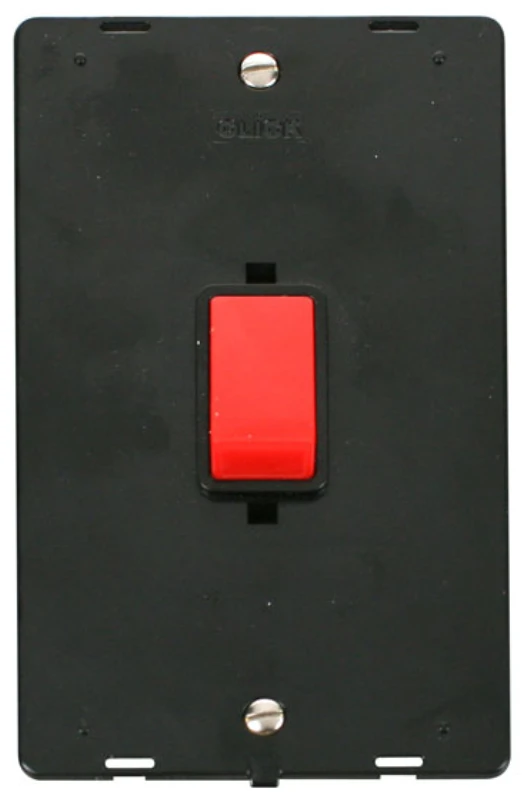 Click Scolmore Black 45A 2 Gang (Vertical) Double Pole Plate Red Switch Black Insert