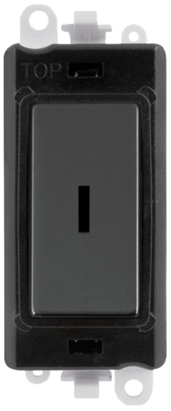 Gridpro black frame 20AX 2 way black nickel keyswitch module. · · · Dimensions 24.5mm (W) x 50mm (H) x 22.5mm (D) · · Module Frame Finish Black · · Module Finish Black Nickel · · Body & Insert: Nylon · · Maximum Voltage 250V 50Hz · · Load Rating 20AX (Suitable For Inductive Loads) · · Terminal Size 5mm · · Termination Type Screw · · Terminal Torque 1.2Nm · · Terminal Capacity 3 x 2.5mm