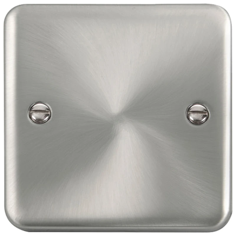 Deco plus rounded profile satin chrome 1 gang blank plate. · · · Dimensions 88mm (W) x 88mm (H) x 8mm (D) · · Plate Design & Finish Rounded Profile Satin Chrome · · Gasket Colour Supplied With Both Black & White Gasket · · Front Plate: Stainless Steel · · Plate Fixing Centres 60.3mm · · Ingress Protection IP20 · · Back Box Depth 16mm Minimum · · Operational Temperature -5°C to +40°C · · Warranty 10 Years