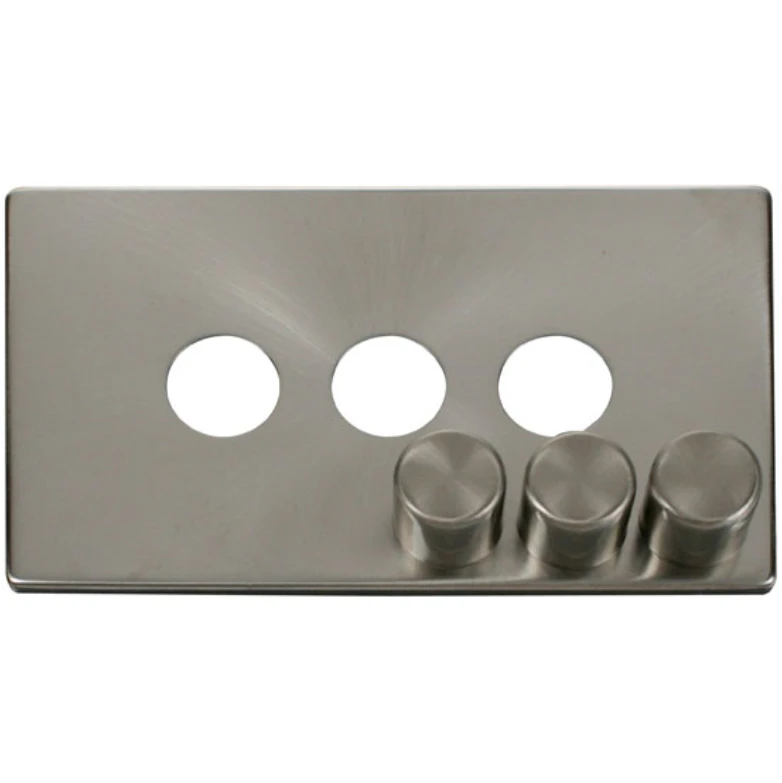 Click Scolmore Brushed Stainless 3 Gang Dimmer Switch Cover Plate & Control Buttons