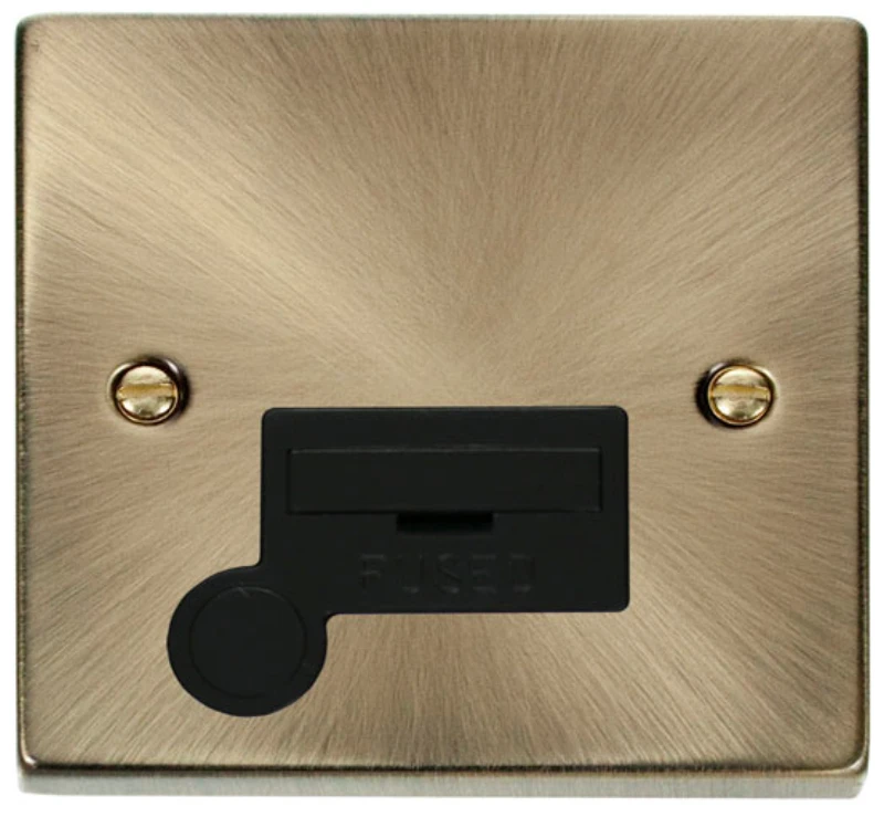 Click Scolmore Connection Unit Flex Outlet 13A Antique Brass Black Insert Victorian
