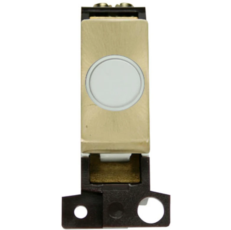 Scolmore MiniGrid Flex Outlet Module Satin Brass finish. This MiniGrid module is easily and quickly exchanged or mounted onto unfurnished plates by means of a simple single screw fixing. · · · Satin Brass finish · · 20A Flex Outlet · · BS 5733: 2010