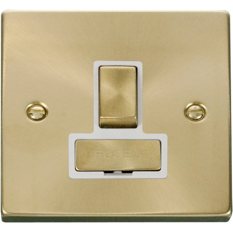 Click Scolmore Connection Unit Ingot Switched 13A Sat Brass White Insert Victorian