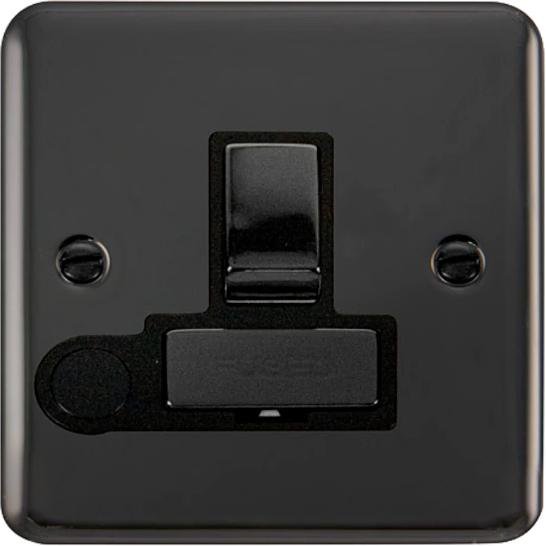 Rounded profile black nickel 13A ingot double pole switched fused connection unit with optional flex outlet. · · · Plate Dimensions (mm) 88 (W) x 88 (H) x 8 (D) · · Dimensions With Gasket (mm) 91 (W) x 91 (H) x 9 (D) · · Style Rounded Profile · · Finish Black Nickel · · Insert Colour Black · · Gasket Colour Black · · Anti Microbial Certified No · · Rated Voltage (V) 250 · · Resistive Load Rating (A) 13 · · Fuse Fitted Rating & Type 13A