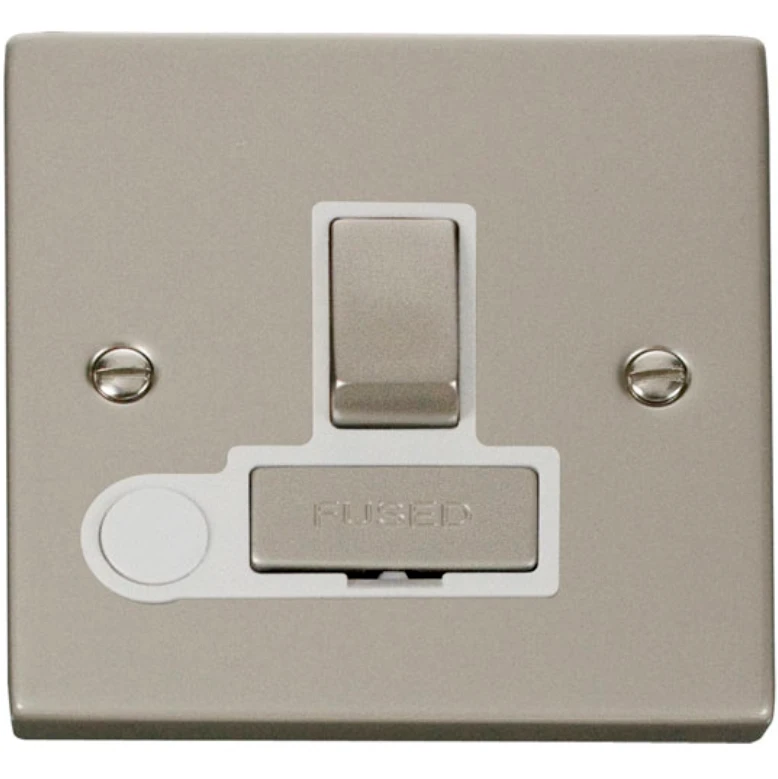 Click Scolmore Connection Unit Ingot Switched Flex Outlet 13A Pearl Nickel White Insert