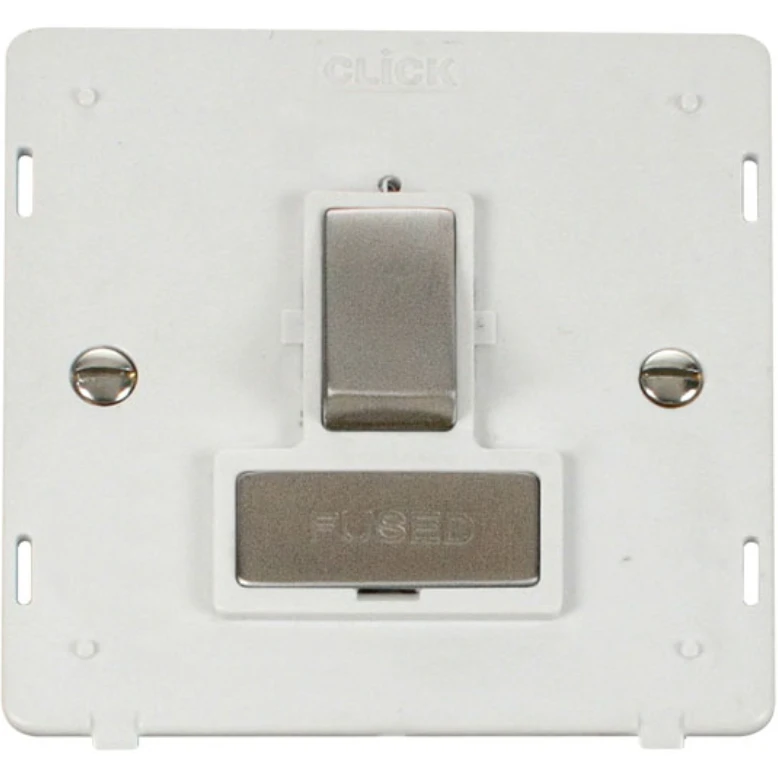 Click Scolmore Connection Unit Interior Fused Switched 13A Polar White Stainless Steel