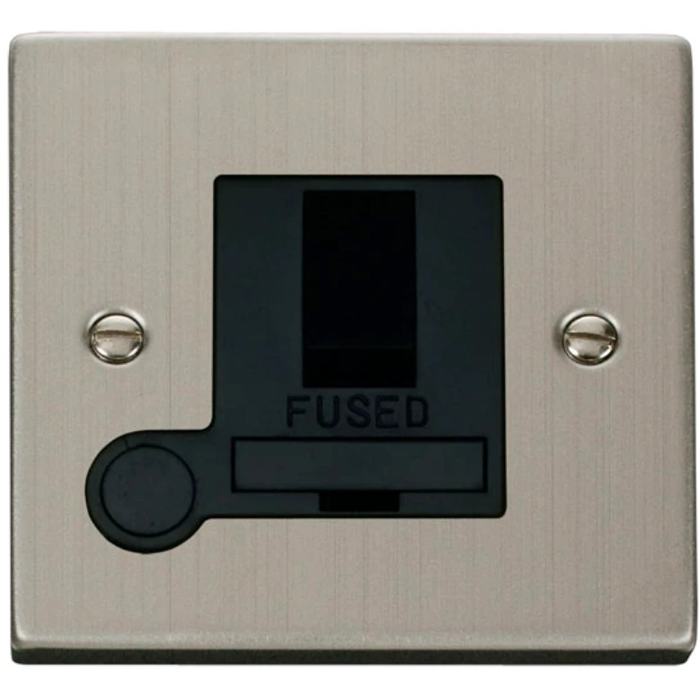 Click Scolmore Connection Unit Switched Flex Outlet 13A Stainless Steel Black Insert Vict