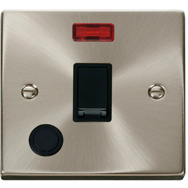 Click Scolmore Connection Unit Switched Flex Outlet&Neon 20A Sat Chrome Black Insert V