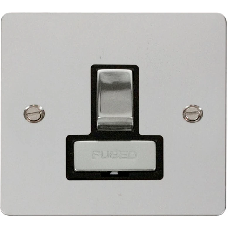 Click Scolmore Connection Unit Switched Fused 13A Polished Chrome Black Insert