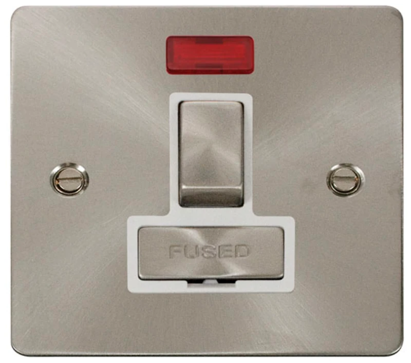 Click Scolmore Connection Unit Switched Fused&Neon 13A Brushed Stainless White Insert