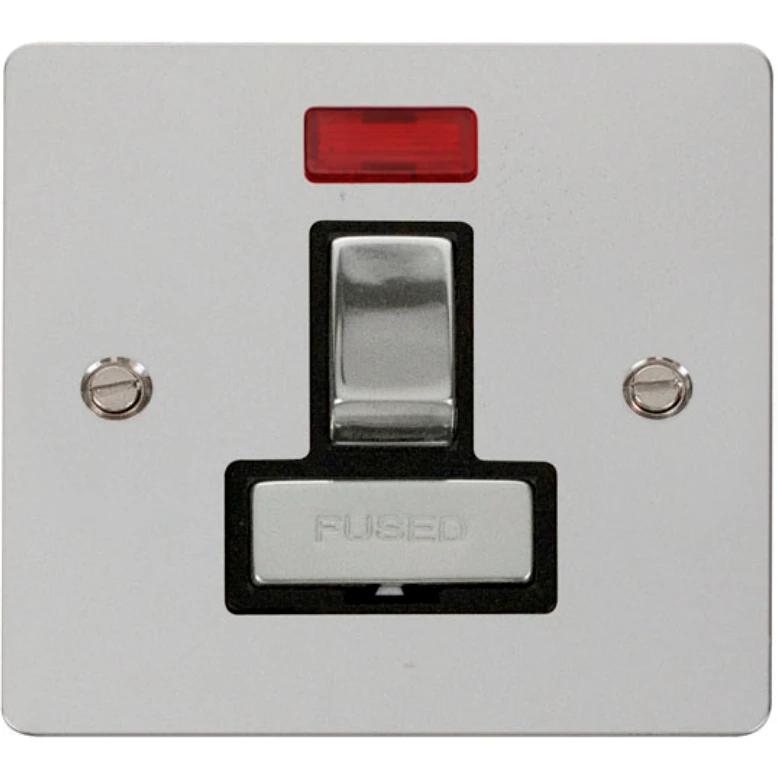 Click Scolmore Connection Unit Switched Fused&Neon 13A Polished Chrome Black Insert