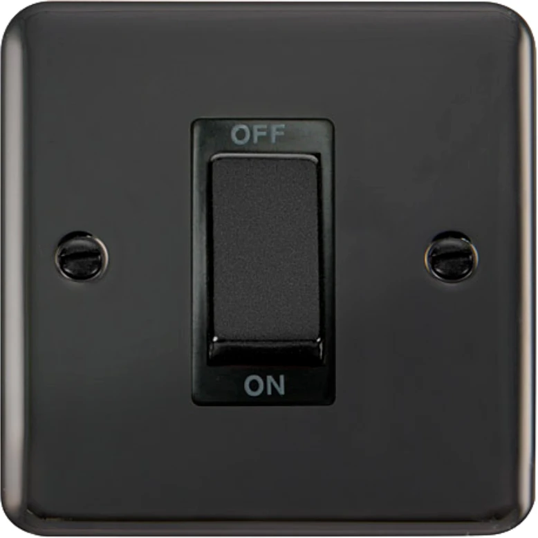 Rounded profile black nickel 45A ingot 1 gang double pole plate switch. · · · Plate Dimensions (mm) 88 (W) x 88 (H) x 8 (D) · · Dimensions With Gasket (mm) 91 (W) x 91 (H) x 9 (D) · · Style Rounded Profile · · Finish Black Nickel · · Insert Colour Black · · Gasket Colour Black · · Anti Microbial Certified No · · Rated Voltage (V) 250 · · Resistive Load Rating (A) 45 · · Termination Type Screw