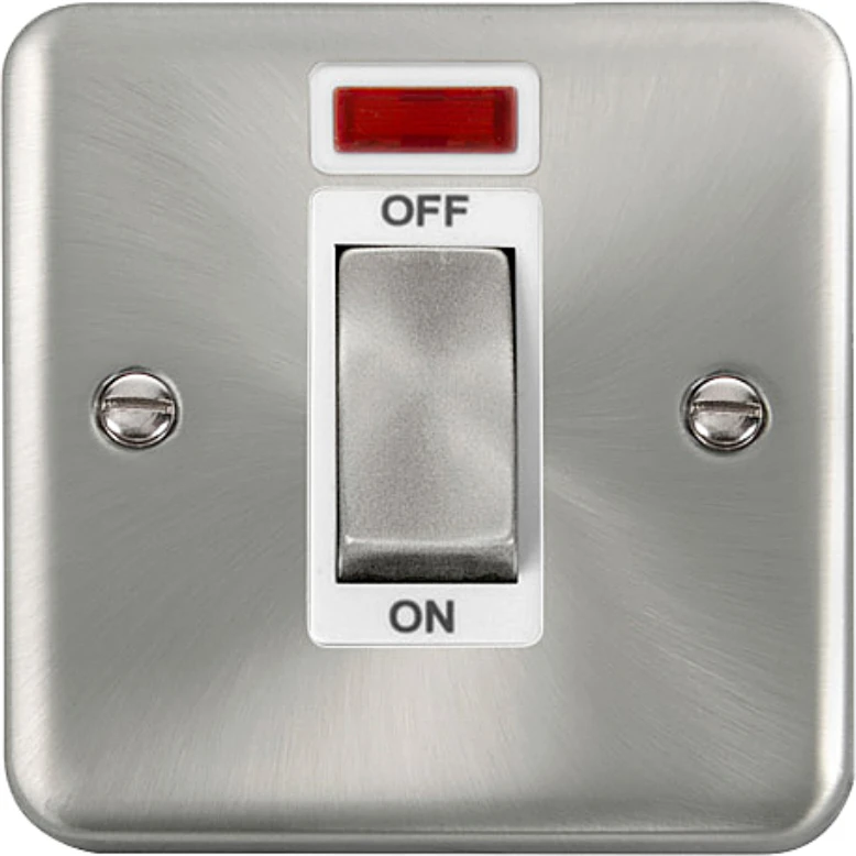 Click Scolmore Control Switch Ingot 1 Gang DP Neon 45A Satin Chrome White Insert