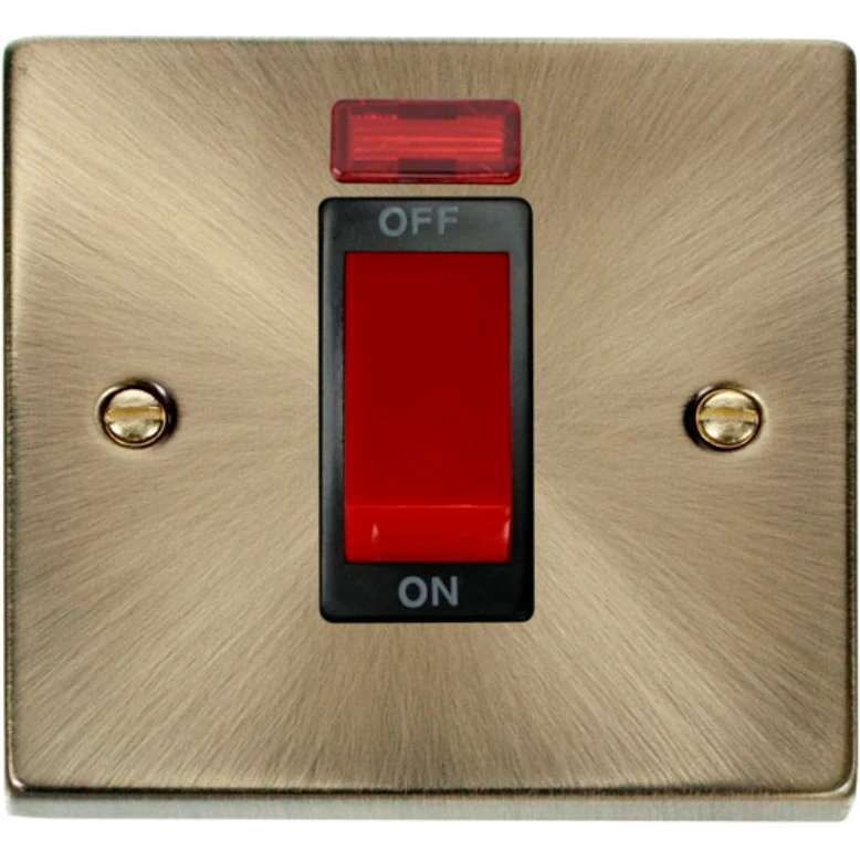 Click Scolmore Cooker Control Switch 1 Gang Neon 45A Antique Brass Black Insert Victori