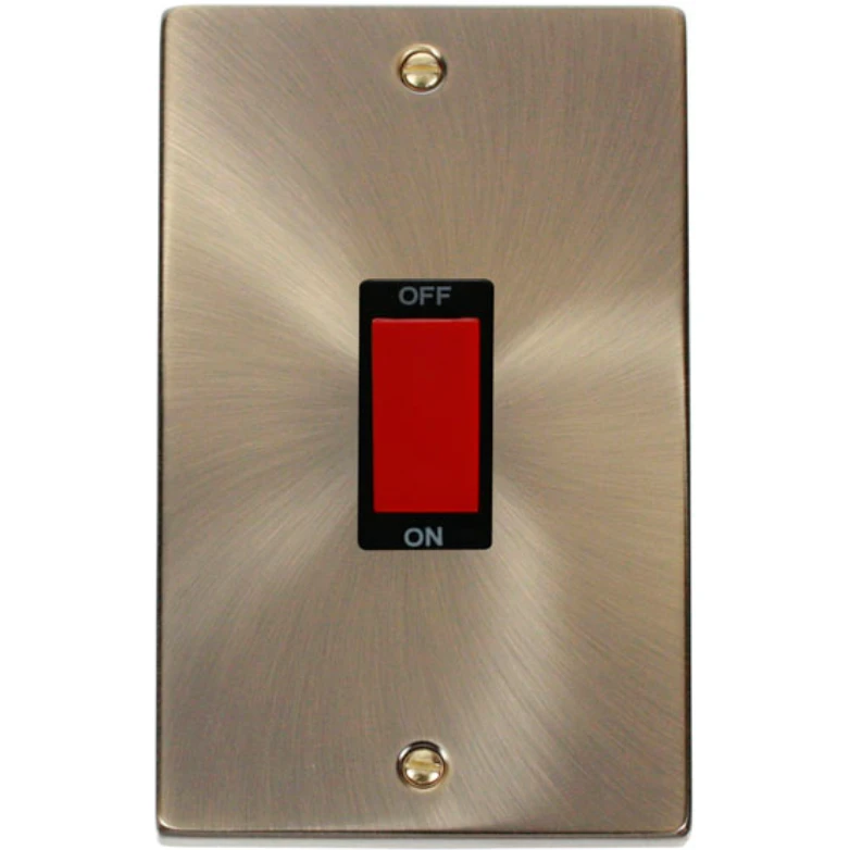Click Scolmore Cooker Control Switch 2 Gang 45A Antique Brass Black Insert Victorian