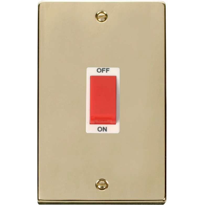 Click Scolmore Cooker Control Switch 2 Gang 45A Polished Brass White Insert Victorian