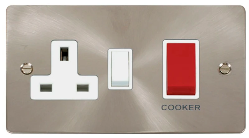 Click Scolmore Cooker Control Unit 13A Socket 45A Brushed Stainless White Insert
