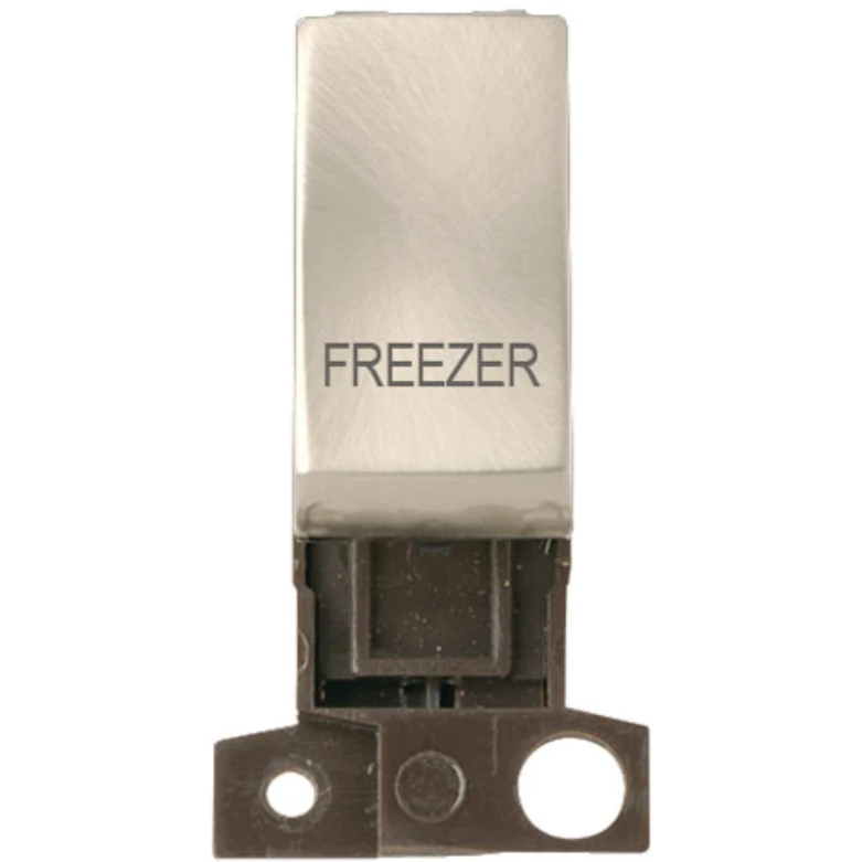 Minigrid freezer satin chrome 13A/10AX ingot double pole switch module. · · · Dimensions 25mm (W) x 53mm (H) x 20mm (D) · · Aperture Dimensions 16mm (W) x 31.5mm (H) · · Finish Satin Chrome · · Rocker Switch: Urea · · Rear Housing: Nylon · · Maximum Voltage 250V 50Hz · · Load Rating 13A/10AX (Suitable For Inductive Loads) · · Terminal Size 3.5mm · · Terminal Torque 0.4Nm · · Terminal Capacity 4 x 1.5mm