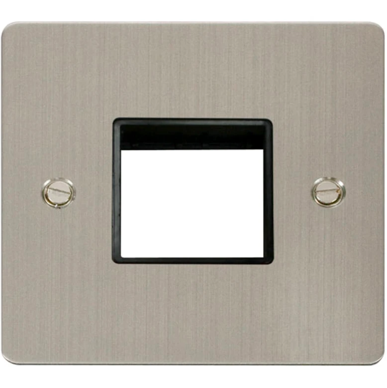 Click Scolmore Front Plate 1 Gang 2 Aperture Stainless Steel Black Insert