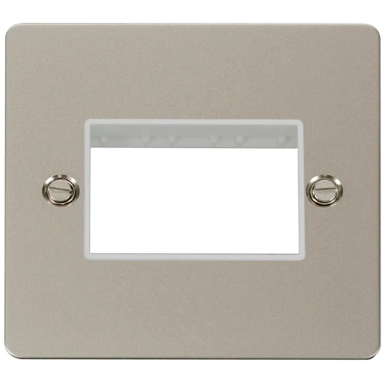 Define flat plate pearl nickel white insert 1 gang minigrid unfurnished plate – 3 apertures. · · · Dimensions 86mm (W) x 86mm (H) x 1.3mm (D) · · Plate Design & Finish Define Flat Plate Pearl Nickel · · Insert Colour White · · Front Plate: Stainless Steel · · Insert: Urea · · Plate Fixing Centres 60.3mm · · Ingress Protection IP20 · · Operational Temperature -5°C to +40°C · · Warranty 10 Years