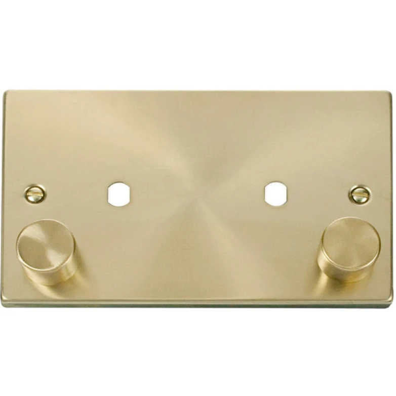 Click Deco VPSB186 Victorian Satin Brass 2 Gang Plate Twin Aperture (1630W Max) · · · 2 Gang Plate Twin Aperture (1630W Max) · · Victorian Satin Brass · · Click Deco · · MD9014: 100W Dual Mode LED Dimmer Module MD9001: 6A Push ON/OFF (Dummy Dimmer / Non Dimmable) Module MD9010: 1-10V Analogue Rotary Dimmer Module MD9022: 40-250W Leading Edge Dimmer Module MD9042: 60-400W Leading Edge Dimmer Module · · Ingress Protection IP20