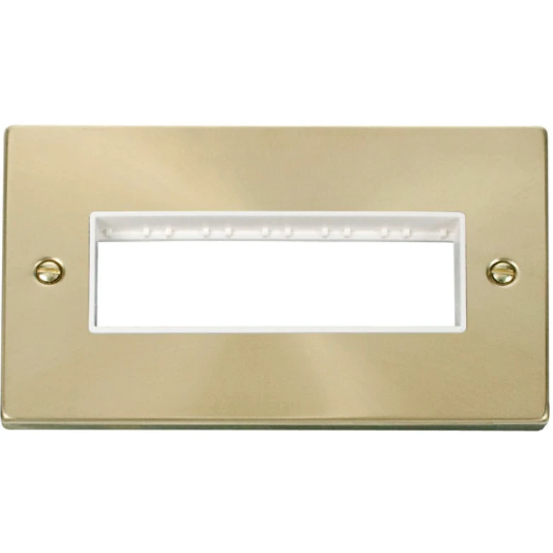 Click Scolmore Front Plate 2 Gang 6 Aperture In Line Satin Brass White Gasket Vic