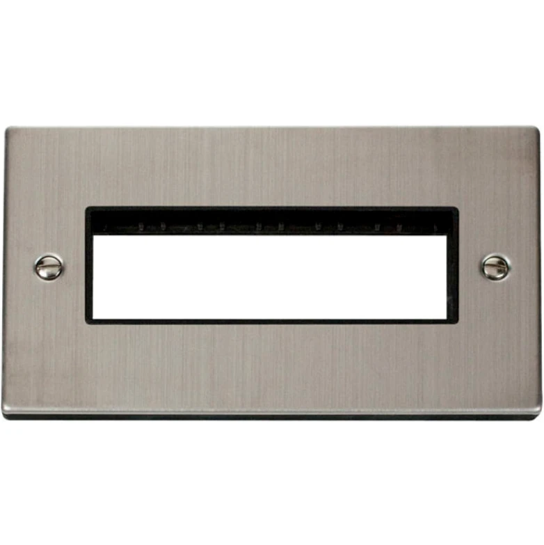 Click Scolmore Front Plate 2 Gang 6 Aperture In Line Stainless Steel Black Gasket Vi