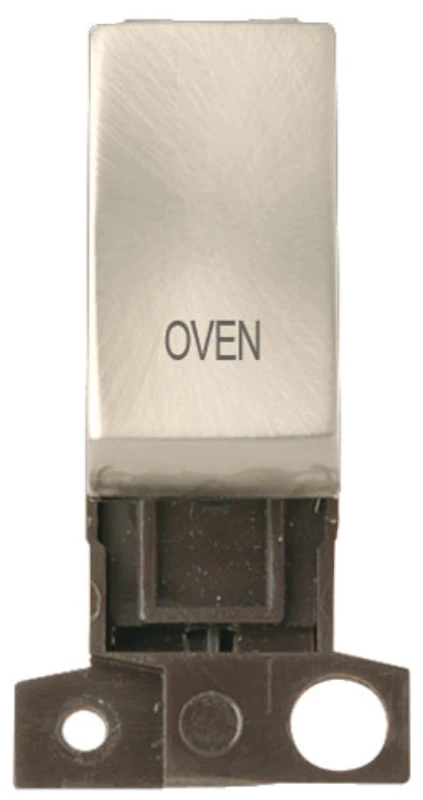 Minigrid oven satin chrome 13A/10AX ingot double pole switch module. · · · Dimensions 25mm (W) x 53mm (H) x 20mm (D) · · Aperture Dimensions 16mm (W) x 31.5mm (H) · · Finish Satin Chrome · · Rocker Switch: Urea · · Rear Housing: Nylon · · Maximum Voltage 250V 50Hz · · Load Rating 13A/10AX (Suitable For Inductive Loads) · · Terminal Size 3.5mm · · Terminal Torque 0.4Nm · · Terminal Capacity 4 x 1.5mm