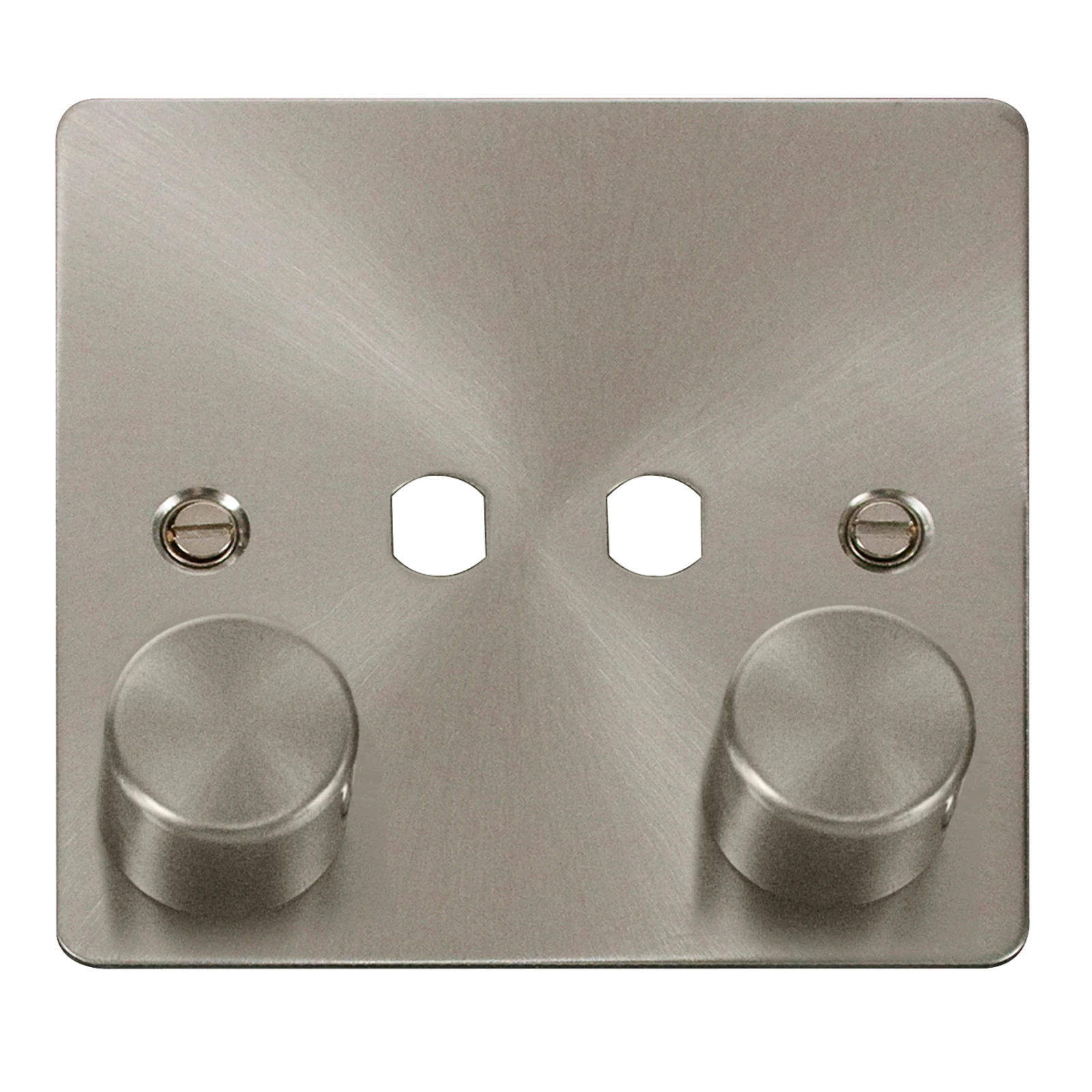 Click Scolmore Plate 2 Gang Single Dimmer Knob Brushed Stainless