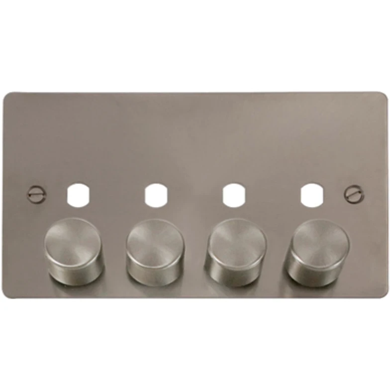 Click Scolmore Plate 4 Gang Double Dimmer Knob Brushed Stainless