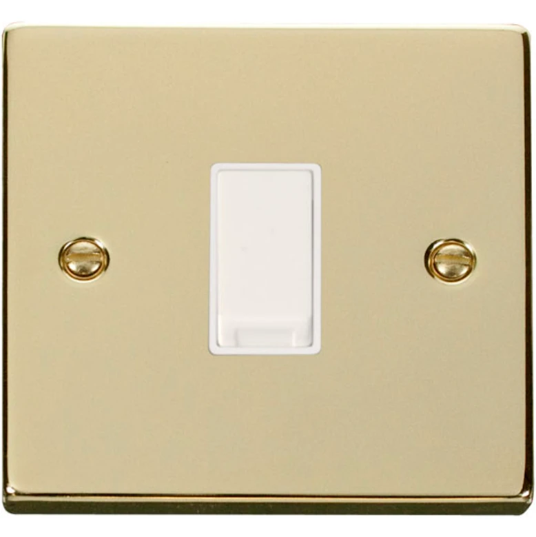 Scolmore Deco Switch with Polished Brass finish stainless steel front plate. This smooth modern lines of the Deco plate switch will fit easily into traditional and contemporary designs alike. · · · Polished brass finish · · 10AX (Suitable for Inductive Loads) · · Terminal Capacity 4 x 1.5mm2 or 2 x 2.5mm2 · · Back Box Depth 16mm Minimum