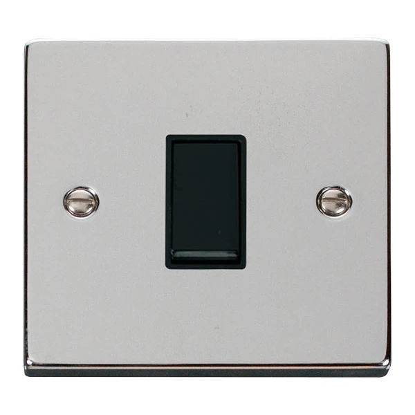 Click Scolmore Plate Switch 1 Gang 2 Way 10A Polished Chrome Black Insert Victorian