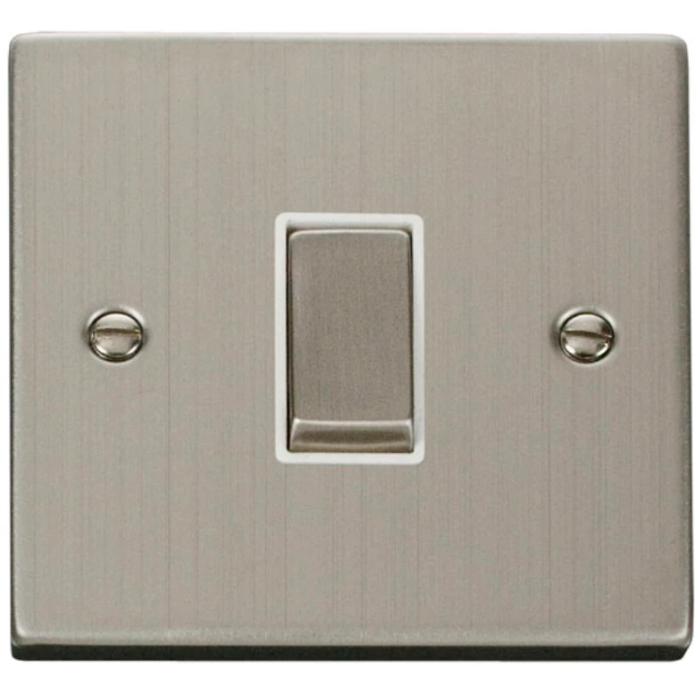 Click Scolmore Plate Switch 1 Gang Intermediate 10A Stainless Steel White Insert Victorian