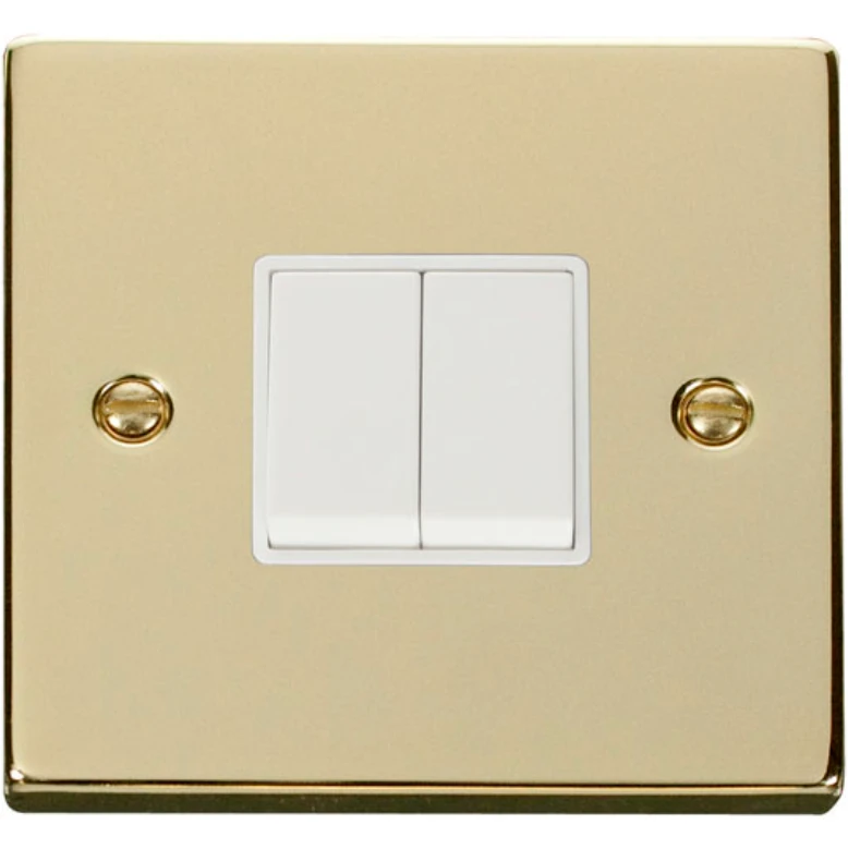 Click Scolmore Plate Switch 2 Gang 2 Way 10A Polished Brass White Insert Victorian